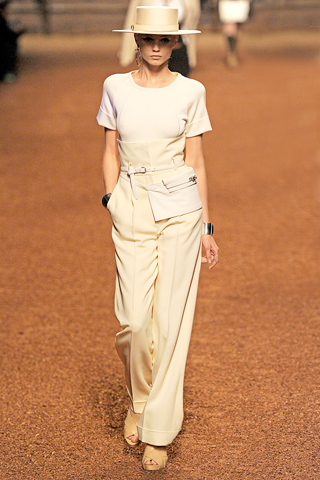 Sąmoningai pabrėžiamos kūno formos. Čia Hermès pateikia nemažai originalių sprendimų. Tai laisvai krentančios šifono suknelės, balta organza, muslino pelerinos – be galo patogu, nevaržo kūno, tačiau jį išryškina.