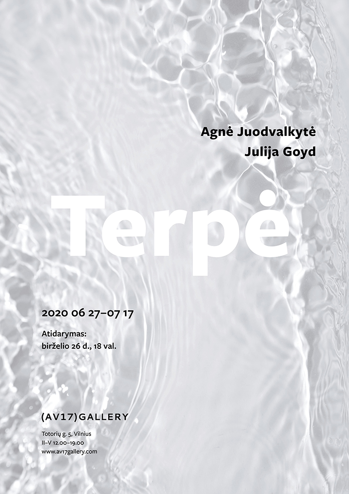Birželio 26 d. 18 val. galerija (AV17) kviečia į menininkių Agnės Juodvalkytės ir Julijos Goyd parodos „Terpė“ atidarymą. Berlyne gyvenančių ir kuriančių menininkių parodoje pristatomos fotografijos, šiuolaikinė tapyba ir objektai, kurių centre atsiduria kūnas ir vanduo. Menininkės savaip tyrinėja atminties likučius ir laiko tėkmę realiuose bei antropomorfiškuose kūnuose, juos panardinant vandenyje ar juo apliejant. Paroda tampa specifine zona – terpe, kurioje vyksta saviti dėsningumai: lūžta šviesa, susiduriama su vidiniais atspindžiais bei panyrama į transcendentinį laiką. Čia erdvė veikia kaip pereinamoji būsena, slenkstis tarp begalinio laiko ir kūniško trapumo bei entropijos.