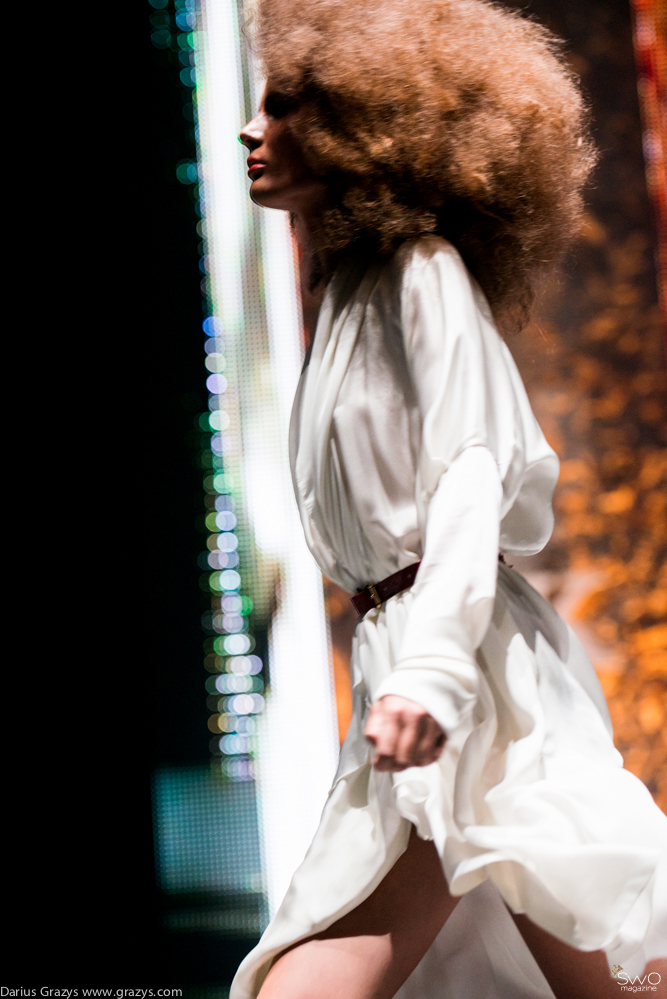 SwO išvydo daug: nuo disco ritmu žingsniuojančių divų baltomis suknelėmis, primenančių Beyonce, iki vintažinių Trussardi vaikinų. Afrikietiškos nuotaikos, pagardintos gaivališka oda ir dramatiškų suknelių. Roberto Kalinkino užmojai dideli, talentas – irgi. Dizaineris, nuolat kuriantis dvi linijas – ready-to-wear ir vienetinių drabužių couture – šias pristatė savo pavasario/vasaros kolekcijos renginyje. Kone 100 modelių (tiek kartais nepristato nė didieji mados namai!), Gyčio Ivanausko choreografija bei aksominis Jazzu balsas – tai buvo tikras mados spektaklis. Lietuvos mada, atrodo, vakar žengė ne per rudenišką purvą, o per nesustingusį betoną ir paliko ryškų pėdsaką. Robertas Kalinkinas su žmona Agne madoje sukasi dar tik penkmetį, tačiau yra žavus ir tvirtas mados duetas. Džiaugiamės ir laukiame naujų darbų.
