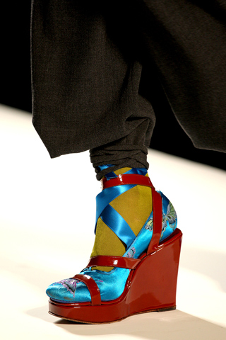 Turbūt pamenate, kad dar šį pavasarį bei vasarą dažniausiai dizaineriai rinkdavosi vieną ir tą patį avalynės šabloną: batelius su itin aukštu kulnu bei priekinėje dalyje esančia keleto centimetrų aukščio platforma. Jean Paul Gaultier dar ir šį sezoną negalėjo atsispirti lieknai kojai, padailintai nuostabios formos, tačiau gana gąsdinančiai avalynei. Vis dėlto jis atrado šį tą įdomesnio ir originalesnio. Tai Maroko stiliaus batai į viršų lenktu smailiu priekiu. Kitaip tariant, Aladino kurpaitės su kulniuku.